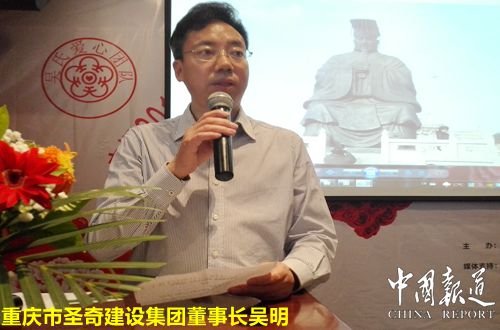 中国报道《魅力城乡》主编吴蜀丰向重庆爱心团队的成立表示最热烈的祝贺!向前来参加重庆爱心团队的各位吴氏宗亲表示最热烈的欢迎!向为重庆爱心团队给予大力支持和付岀表示最挚诚的感谢!吴蜀丰深情的说,我们是吴氏先祖泰伯公﹑仲雍公的后裔!因为,我们有“三让天下孔子赞,泰伯高风旷古今”的独特美誉!我们有“开辟江南新天地,奔荊不忘故国情”厚重底蕴!因为,我们有“世家第一史记铭,枝繁叶茂根底深”的精妙绝伦!天上有口言守信,口下昰天志凌云,至德万代万代传,天下吴氏一家亲!我们有义务传承至德精神!弘扬吴氏文化!吴蜀丰最后表示中国报道以传递正能量为己任,将一如继往的客观的宣传报道吴氏文化,传递正能量!有你更精彩!