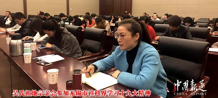 2017年11月14日,无锡吴氏祖地宗亲会副会长吴敏参加无锡市社科界党的十九大精神学习。连日来,这些重要论述在社科理论界引起强烈反响。大家纷纷表示,能够亲身经历和参与新时代中国特色社会主义建设的伟大实践,深感责任重大、使命光荣,将以百倍的热情和干劲,奋力展现出新时代的新气象、新作为,谱写好新时代中国特色社会主义无锡实践的崭新篇章。
