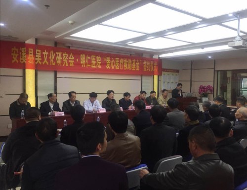 为贯彻十九大“人民对美好生活的向往就是我们的奋斗目标”的精神,增强安溪吴氏宗亲的获得感。2017年11月25日上午九时半,安溪吴文化研究会与安溪明仁医院“爱心医疗救助基金”项目签约仪式在安溪二环路明仁医院九楼会议室隆重举行。