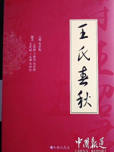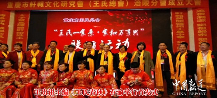 书名题字为书圣王曦之字体,水有源 树有根,不能忘了祖宗,编委会成员 参加《王氏春秋》首发式,主编 王贵银介绍《王氏春秋》,编委、编缉 重庆人民大礼堂集体合影,该书定价 98.00元,
