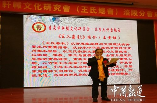 中国报道讯(记者吴蜀丰 特约撰稿 王永川)金秋十月,喜事连连,值全国上下认学习真贯彻党的十九大精神之际,2017年11月4日在涪陵新区酒店又迎来了重庆市轩辕文化研究会(重庆王氏总会)涪陵王氏分会隆重成立盛典仪式。
