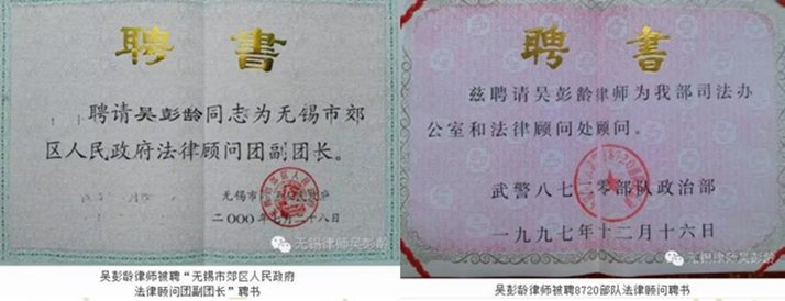 【关于吴彭龄】无锡律师吴彭龄,中共党员,大学本科,中国法学会会员,江苏仁勤律师事务所名誉主任、执业律师,i板和澳洲上市保荐律师。吴彭龄律师1990年通过律师资格考试,1991年取得《中华人民共和国律师资格证》,1992年领取《中华人民共和国律师执业证》,开始律师执业。吴彭龄律师曾任县级政府法制办公室主任、法制事务所主任,应聘担任过多年县级政府法律顾问团副团长、区长法律顾问和武警某师部法律顾问、某实验小学法制副校长,现为无锡市首批全民法治阅读辅导员,无锡市人民检察院参与化解和代理涉法涉诉信访案件律师。吴彭龄律师擅长担任各级政府、政府部门和各类企事业单位的法律顾问,能胜任办理各类公司经营、合同履行、婚姻家庭、工程建筑、债务催讨等民事(经济)案件;受贿、渎职、法人犯罪等刑事案件;拆迁安置、国家赔偿等行政案件;尤其擅长参与各级政府、各类企事业单位的顶端设计、协商调解、尽职调查、谈判见证等非讼业务,可作为各类中小企业i板和澳洲上市保荐律师。