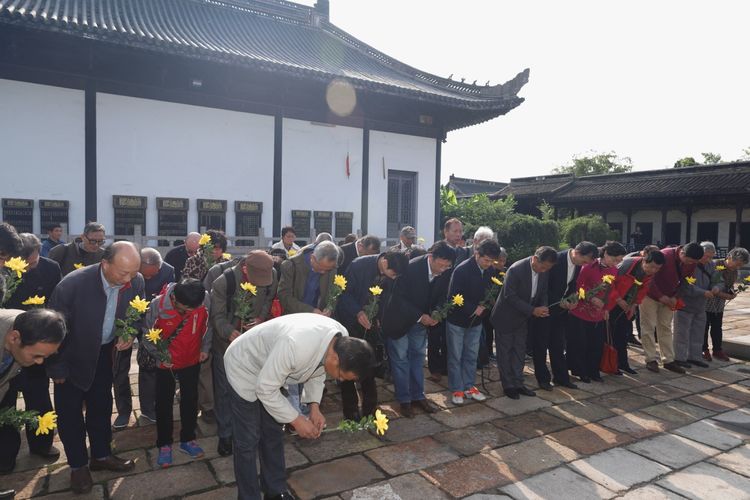 金秋十月,丹桂飘香。2017年10月20日上午,常州市吴文化研究会和常州市谱牒和祠堂文化研究会一行五十多位专家学者,由原常州市人大常委会副主任、常州市吴文化研究会会长赵忠和、常州市人大常委会委员、原常州市总工会主席、常州市吴文化研究会执行会长薛焕炳和常州市政协会员、常州市谱牒和祠堂文化研究会会长朱炳国等率队赴江阴季子祠拜谒了江南人文始祖季札公并献鲜花。随后在江阴延陵季子文化研究会、延陵季子宗亲会贵宾室就季子文化及太湖流域吴文化举行座谈。一起陪同祭祖和座谈的有江阴延陵季子文化研究会、延陵季子宗亲会会长吴才兴,执行会长吴卫祖,副会长吴菊琴、吴明刚、副监事长吴建义;常州市名人研究会吴氏名贤研究分会、常州市吴氏宗亲联谊会会长吴再兴,常务副会长吴锡金,监事长吴振达,秘书长吴纳新,副会长吴伟国。