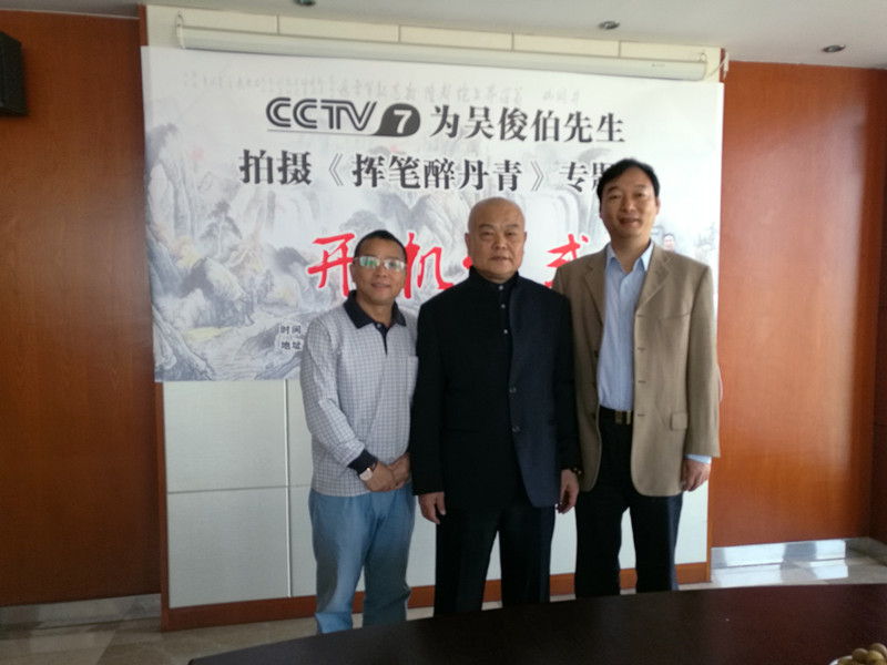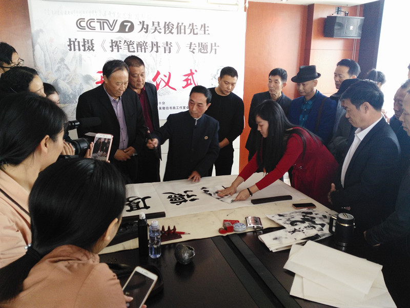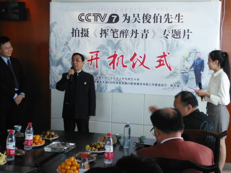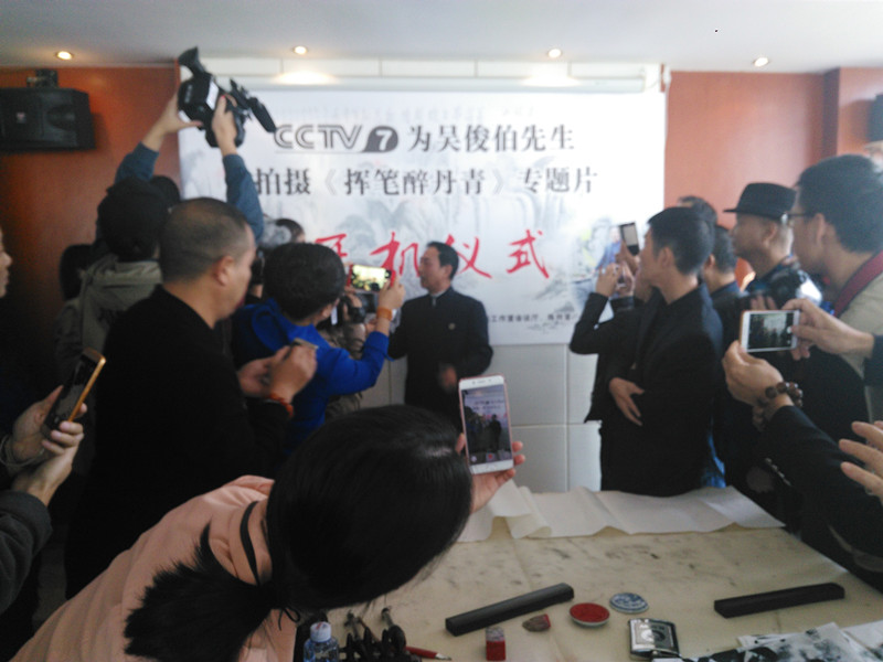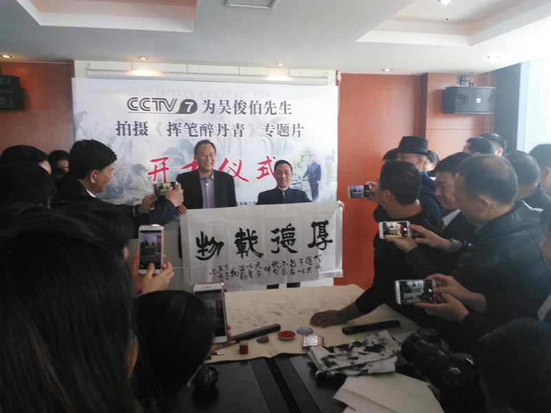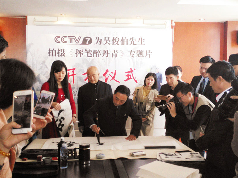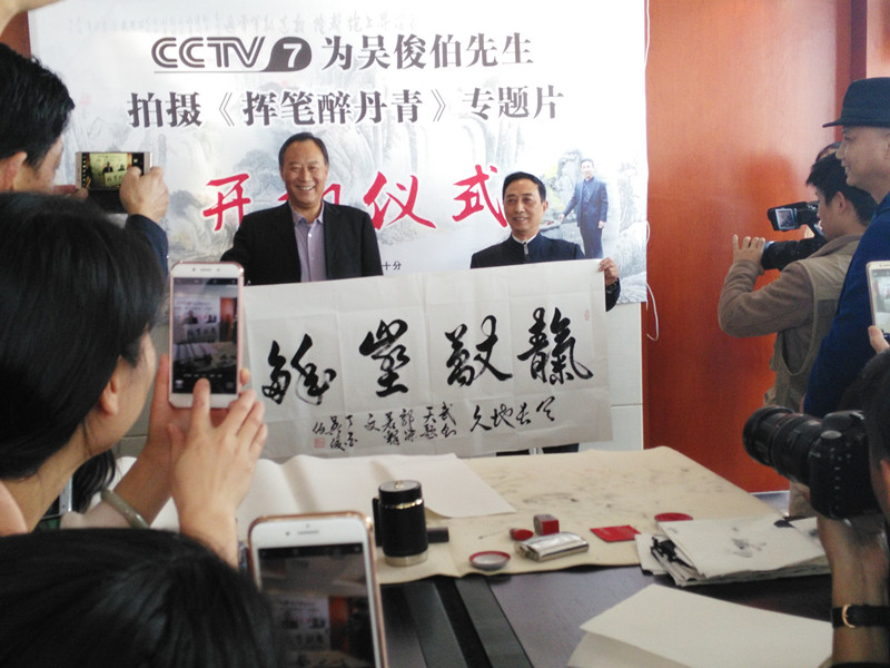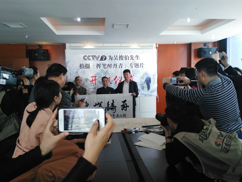 【江西省谱牒研究会吳氏文史研究会、江西省吳氏宗亲总会讯:吳小平】2017年9月29日上午九点半,在南昌市洪都北大道的高能首座20楼的吳俊伯先生的书画工作室里,中央电视台第七频道,为国内著名书画家吳俊伯院士隆重举行电视专题片《挥笔醉丹青》的开机仪式。
