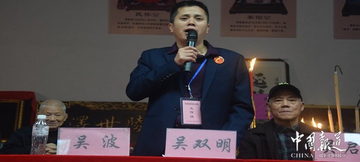 吴文富在致辞中说,初冬时节,我们在千年名村——东阳隆重聚会,共同庆祝萍乡吴氏宗祠竣工,这是萍乡吴氏的一大喜事,更是中华吴氏的一大盛事,吴氏宗族的兴旺发达,更为萍乡市增添了一道亮丽的文化景观。