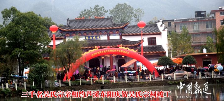 中国报道讯(记者吴蜀丰)今日(2017年11月18日),来自福建、广东、湖南、重庆、四川、贵州、云南、辽宁、江苏、江西等省市及台湾、香港、加拿大等地区近3000余名吴氏宗亲代表相约江西萍乡市芦溪县芦溪镇东阳村共同庆贺吴氏宗词落成典礼。