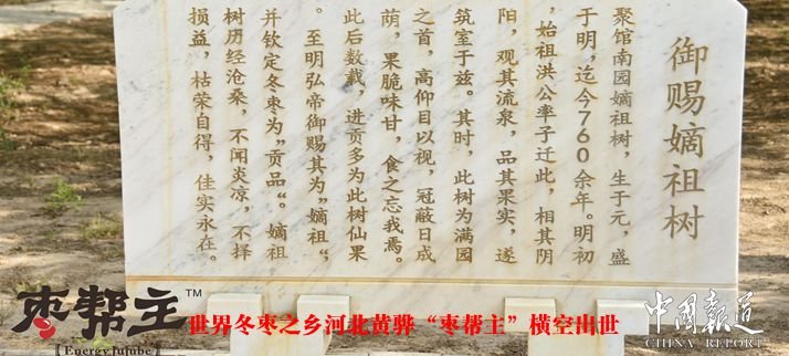 黄骅冬枣已有年三千年历史,可以上溯至秦汉之前,史载“燕赵千树枣”,“自古有鱼盐枣之饶”,“柳县章武(秦汉时黄骅域内置柳县、章武 )皆植枣,以此物当食,家酿半斛,殷实富足”。元世祖时,黄骅冬枣形成规模化种植,黄骅市齐家务聚馆村的冬枣林即由此时种植发展形成。如今,这里仍存有全世界面积最大,年代最古老的原始冬枣林,林中百年以上冬枣古树1067株,其中树龄600年以上者198株,这些古冬枣树虽饱经风霜,仍枝繁叶茂,果实累累。