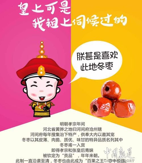 中国报道讯(记者吴蜀丰 吴立新)世界冬枣之乡--河北黄骅 “枣帮主脆冬枣”2017年强势登陆。记者于5月6日在河北沧州天悦大酒店举办的华北吴文化研究会暨第四届河北吴氏宗亲联谊大会有幸吃了一袋“枣帮主”脆冬枣,无论是从口感还是品相都秒杀之前吃过的任何一种脆冬枣。枣帮主以其独有的“乔帮主”卡通形象,吸引了与会代表们的一致好评。