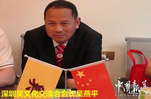 世界至德吴氏商会驻中国片区副秘书长、深圳吴文化交流会会长吴燕平对温吴会的工作给予充分肯定并就吴氏文化发杨光大进行经验交流。