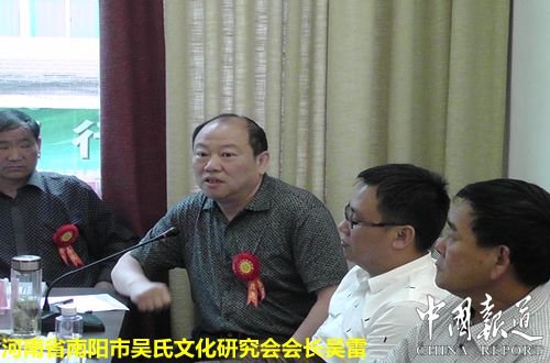 河南省南阳市吴氏文化研究会会长吴雷对参加首届温州泰伯文化节暨腾蛟吴氏宗祠落成庆典活动很是感慨万千,吴雷从事吴文化研达10多年且坚持自费创办《吴氏文化研究》积极弘扬吴文化。