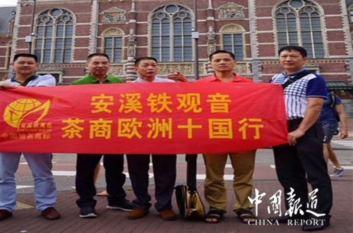 “法”,即“走出去,引进来”,“名茶名货”置换营销法。2015年8月,吴建法与我县十几名茶商结伴“欧洲十国游”,先后到荷兰、比利时、法国、卢森堡、德国等10个国家,把安溪铁观音带到欧洲进行推广。一是,名茶换名表。在瑞士阿尔卑斯大雪山山脚的“名表一条街”,吴建法等人带去的安溪铁观音让当地名表老板品尝后,名表老板当即提出“名表换名茶”,现场订购清香型、浓香型、陈香铁观音各10斤,并支付定金1万元人民币。回国后,通过广州法国领事馆,把所订购的这批茶叶寄给瑞士名表的老板完成交易。二是,名茶换名酒。与意大利当地酒庄合作,以安溪铁观音置换兰博基尼葡萄酒;与贵州省遵义市吴文化经济发展研究会达成合作,以安溪铁观音茶叶置换贵州茅台酒。三是,名茶换名货。按照吴建法的思路,只要走出去,到各地各国去传香播韵,铁观音“置换营销法”即可推而广之,与各地名特产置换营销,进一步拓宽茶叶销售渠道。