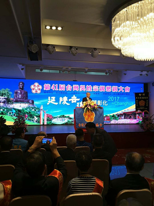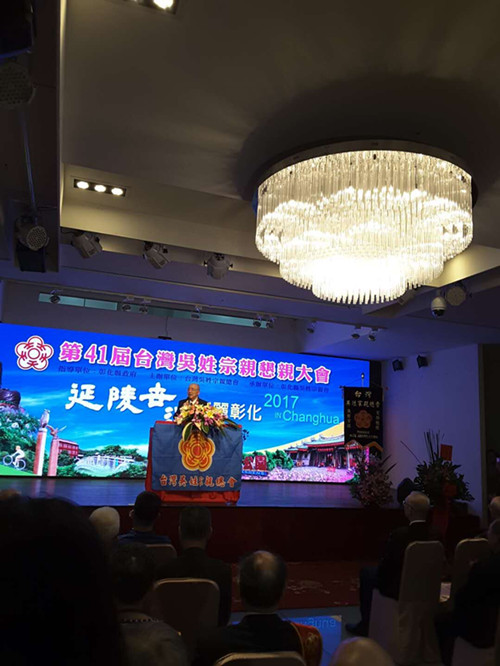 2017年11月11日,厦门吴氏宗亲会会长吴国荣应邀前往台湾彰化,参加台湾吴姓宗亲总会主办、彰化市吴姓宗亲会承办的第41届恳亲大会。