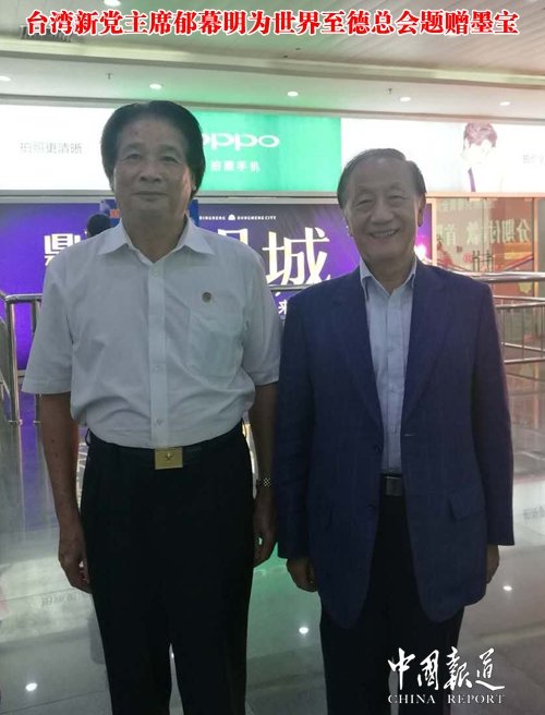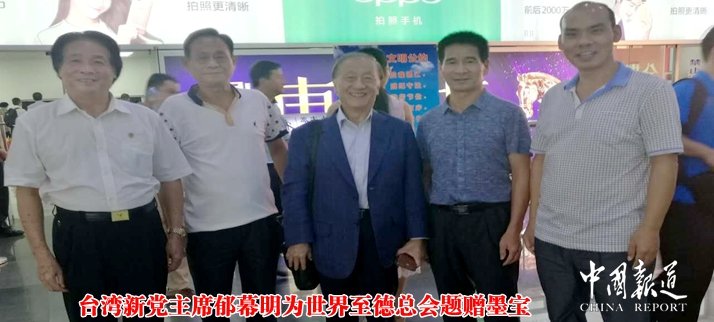中国报道讯(记者吴蜀丰)2017年10月14日,台湾新党主席郁幕明前往广东省湛江市访问世界至德总会,世界至德总会董事局主席吴希民热情接待并向郁幕明主席介绍了世界至德总会近几年来发展情况及所取得的成绩,吴希民说,《世界至德总会董事局在完成《中华吴氏大统宗谱》之后目前正在编撰《世界至德礼仪大典》,该大典工作量大,郁主席对至德的工作给与高度赞赏,表示新党愿与世界也是中国最大的民间社团建立友好往来,共同为祖国统一做出积极贡献。台湾新党郁慕明主席在广东湛江给世界至德总会题词:至德真行!题词可有四种读法:至德真行;至真德行;德至行真;真行至德。给世界至德总会予相当高的评价。