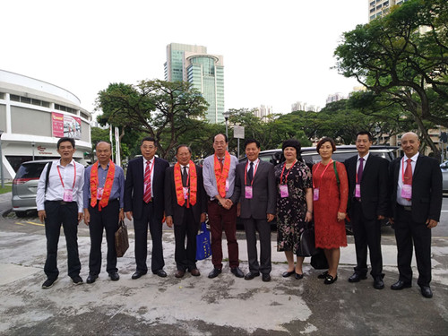 29日上午,举行千人大合照,中午宴会上青春靓丽的主持人,让宾主在亲切友好、气氛热烈的氛围中用调侃的语言宽松地交流,体会着一种异样的亲切。宗亲们情不自禁地上台引吭高歌,引来阵阵热烈的掌声!晚上5点,从住所出发到新达城,整个宴会180多席,近2千人西装革履的着装、美丽的夫人们更是珠光宝气雍容华贵。新达城是新加坡最好的会议场所,今天的现场气氛显得和谐舒适,来宾们喜气洋溢,交谈愉悦,一致赞赏新加坡宗亲会的高大上、震撼人心的场面,让人觉得自叹不如!7点30分大会开始,新加坡荣誉资政、前总理吴作栋宗贤携夫人和各国贵宾踏着红地毯徐徐进入会场。