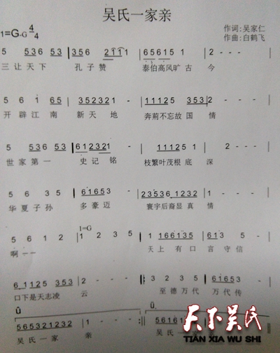 《相约天下吴氏网》主题歌作词:吴蜀丰作曲演唱:吴仕长