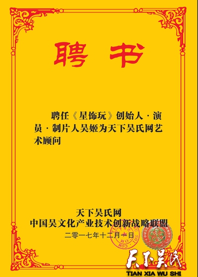 《天下吴氏》网在各位吴氏宗亲的鼎力支持下于2017年10月1日正式上线!现将部分顾问如下公示(新增顾问名单随时更新中……)排名不分先后,巾帼不让须眉,很有典范的10位多才多艺的吴家美女加入!锦上添花!欢迎更多的吴氏宗亲加入到天下吴氏网这个大家庭,为传承吴文化,弘扬至德精神奉献自己的一份光和热!