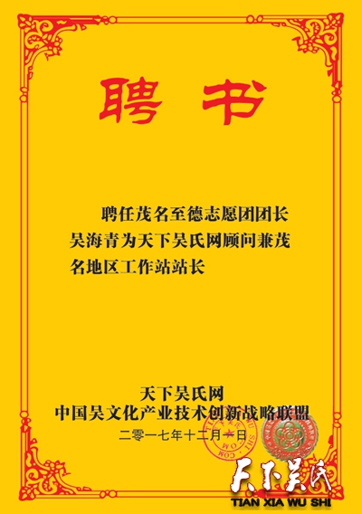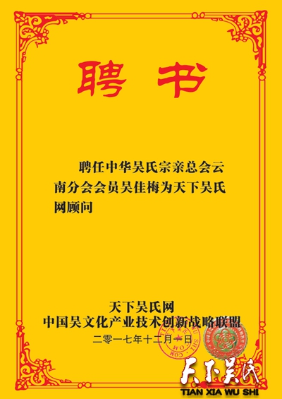 天下吴氏网第二批顾问人员公示