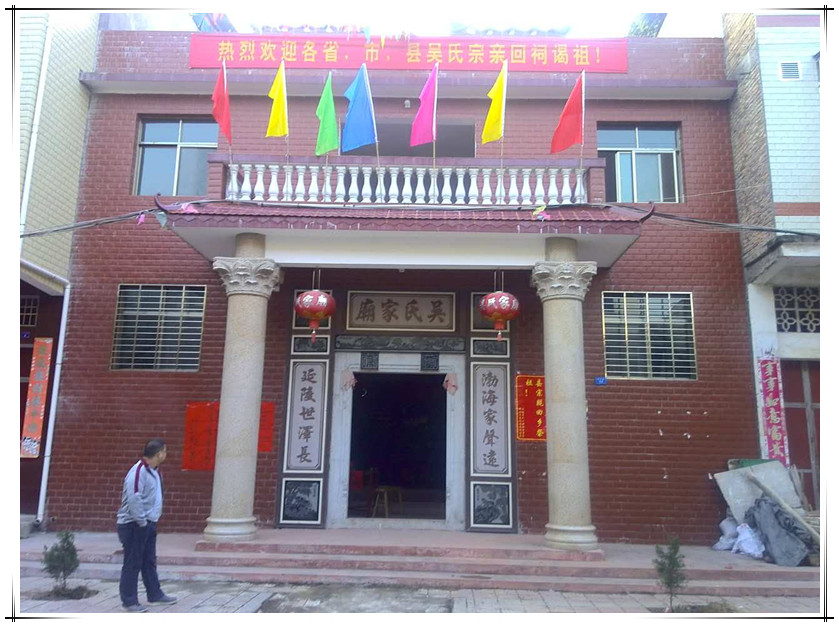 谱记,吉甫公(泰伯72世),又名远谟,坤二公之三子,世居福建省汀州府永定县群萃州,宋进士,原任广东博罗县知县,忠信廉明,邑人戴德,名载邑志。生於宋神宗元丰五年(1082)壬戌正月二十日,卒於宋孝宗隆兴元年(1163)癸未,享寿八十有二岁。配林氏传派福建永定、晋江县灵水、广东大埔等处。公葬福建永定县扶来圩丰田里湖雷乡莲塘岗锈针落槽形庚山甲向,妣林氏福娘,卒于南宋孝宗乾道七年(1171年)辛卯,葬大埔县与永定县相连地界断缺背,又曰沟沙坪村中逆水吸水龟形,戌山辰向。丰顺汤田刊谱载长治地方蓝树校向狗社坪,戌山辰向。乾隆25年(1760年)润五月初四日午时,重修分金,九大房永远昌盛,惟坟左地坪被邹姓建筑围墙,有碍观瞻,次年邀请各户题银,向邹姓买拆围墙地基数丈,即立界无异,裔孙见龙买墓前围地数丈。生子二:长五四郎,次五五郎裔传福建省漳州天宝市。