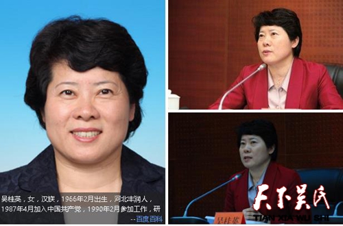 吴桂英,女,北京市朝阳区委书记,汉族,1966年2月出生,河北丰润人,1987年4月加入中国共产党,1990年2月参加工作,研究生文化程度(中国科学院科学技术哲学专业),法学硕士,哲学博士,研究员、高级经济师。