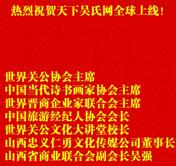世界关公协会主席吴强热烈祝贺天下吴氏网全球