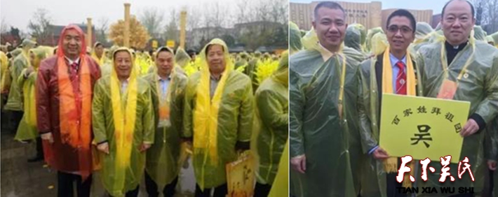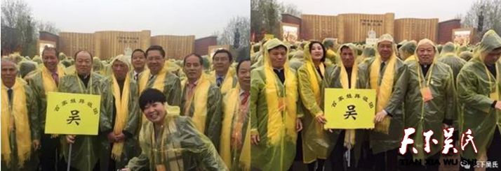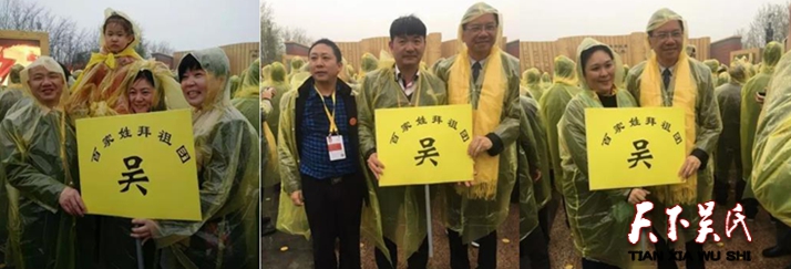 天下吴氏讯(特约采编 吴国发)2017年3月30日(农历丁酉年三月初三),黄帝故里拜祖大典在河南郑州举行,来自世界各地的40多个国家和地区的近万名海内外华人代表纷纷前来参与拜祖大典,场面空前盛大,前所未有!各地的吴氏宗亲也有在被邀请之列,齐聚郑州,虽然下着雨,也冒雨参加黄帝故里拜祖大典,共谋百年大计,十分感动!两岸和平发展论坛召集人、劳动党主席、台湾百姓文化交流协会理事长吴荣元入场题字,在祈福树挂上了祈福牌。