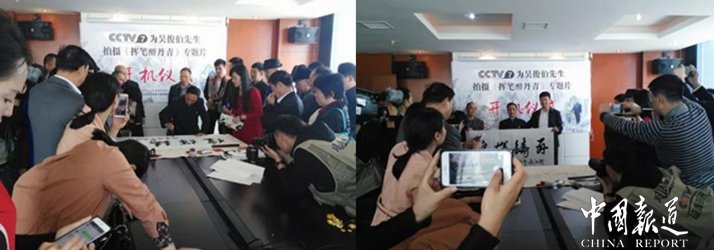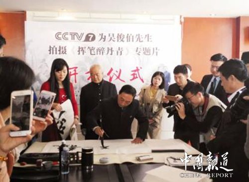 中国报道讯(特约撰稿 吴小平 吴雨)2017年9月29日,在南昌市洪都北大道的高能首座20楼的吳俊伯先生的书画工作室里,中央电视台第七频道,为国内著名书画家吳俊伯院士隆重举行电视专题片《挥笔醉丹青》的开机仪式。