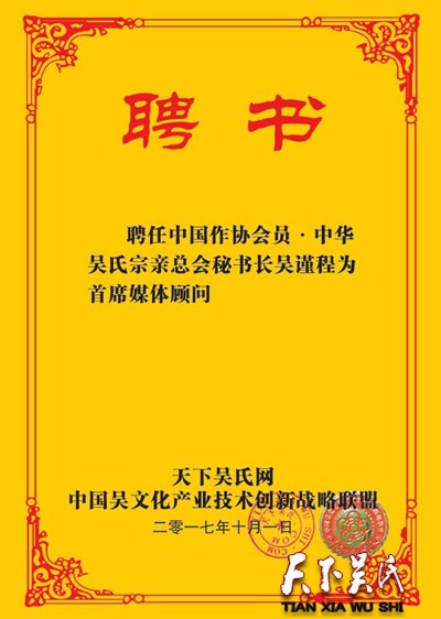 《天下吴氏》网首席媒体顾问