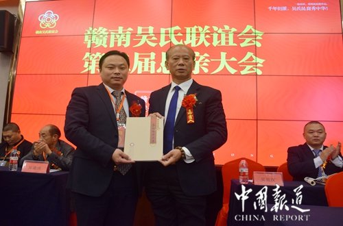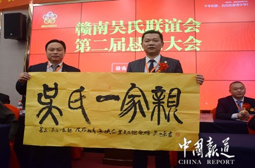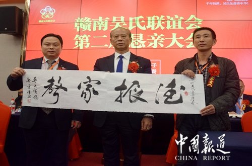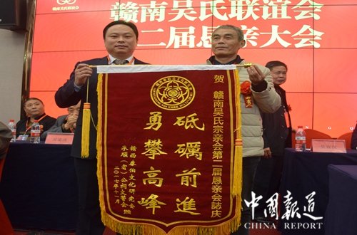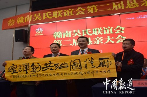 中国报道讯(记者吴蜀丰)欣逢盛世,国泰民安,中华吴氏,不甘落伍,顺应时势,与时俱进。今日(2017年11月19日),来自广东、福建、江苏、湖南、贵州、重庆、江西省赣南地区近100余名吴氏宗亲代表在赣州市康莱博国际酒店参加赣南吴氏宗亲联谊会第二届恳亲会。