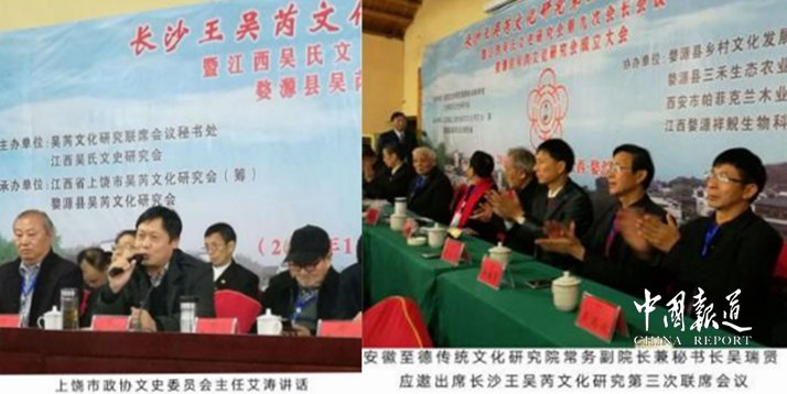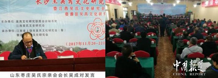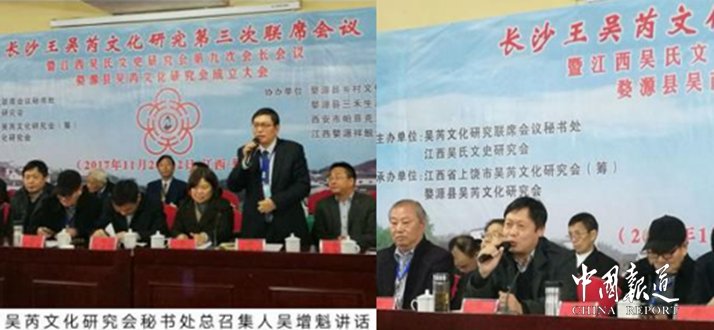 中国报道讯(记者吴蜀丰特约采编 吴三郎)2017年11月21日,深秋的婺源天气渐凉,江西省上饶市婺源的华逸气氛热烈,来自北京、上海、浙江、安徽、江苏、湖南、湖北、贵州、山东以及江西省各地的吴芮文化研究学者以及吴芮后裔共200多人欢聚在这里,参加由吴芮文化研究联席会议秘书处和江西吴氏文史研究会主办,江西上饶市吴芮文化研究会(筹)、婺源县文化研究会承办的“长沙王吴芮文化研究第三次联席会议。