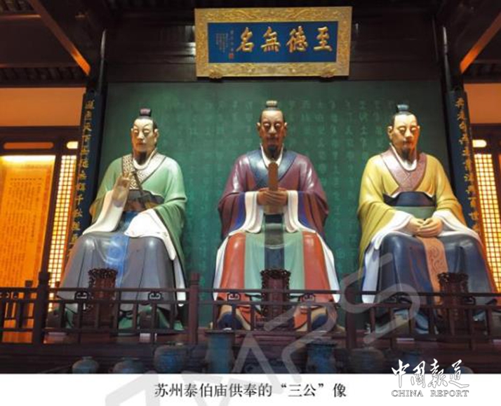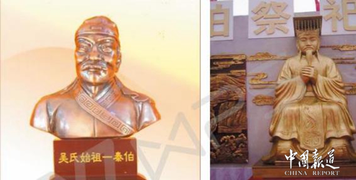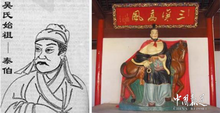 吴太伯,又称泰伯,吴国第一任国君,吴文化的缔造者。姬吴开姓始祖。《史记·卷三十一·吴太伯世家》译之:吴泰伯与其弟仲雍,均为周太王(古公亶父)之子,王季历之兄。季历十分贤能,又有一个具有圣德的儿子昌。太王想立季历以便传位给昌,因此泰伯、仲雍二人就逃往荆蛮,象当地蛮人一样身上刺满花纹、剪断头髪,以示不再继位,把继承权让给季历。季历果然继位,就是王季,昌后来也成为文王。泰伯逃至荆蛮后,自称“句(勾)吴”。荆蛮人认为他很有节义,追随附顺他的有一千余户,尊立他为“吴泰伯”。《论语·泰伯第八》:“泰伯,其可谓至德也已矣,三以天下让,民无得而称焉”。泰伯的孝友、诚信、谦让、自强、开拓进取的至德精神,是中华民族传统文化的瑰宝。汉桓帝赞曰:“贤哉吴泰伯,庆泽弥流长”。清康熙帝题“至德无名”,乾隆帝题“三让高踪”赐匾称颂。为此,作为周代诸侯国吴国第一代君主和吴文化的缔造者,姬吴得姓始祖,慈祥、睿智、坚毅的表情以及神格化的形象是我们设计和雕塑创作的核心。整体以画圣吴道子画像为蓝本进行创作。