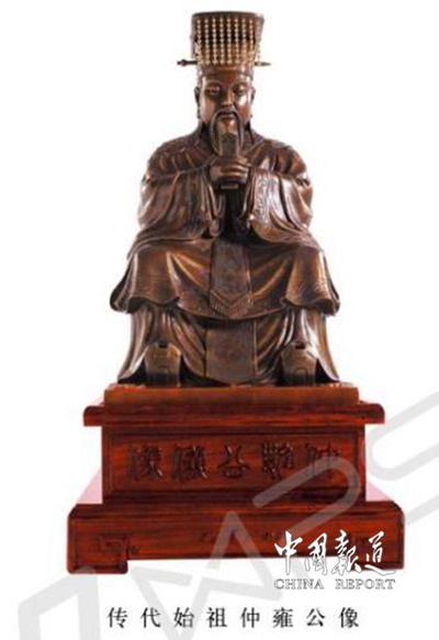 旒冕冠 仲雍公和泰伯公同为吴国的君主,因而代表身份和地位的旒冕冠采用和泰伯公一样的等级。服饰也基本一致。