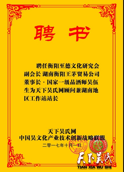 湖南衡阳至德文化研究会常务副会长吴伍生寄语天下吴氏网