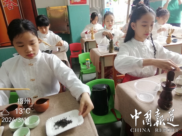 据介绍,学校作为文化传承和传播的重要场所,发挥着重要的作用,向学生传播梧州历史文化、增强学生作为一名梧州人的自豪感,推广梧州茶文化,特别是文化路小学前身就是“茶山书院”,学校因茶而名、为茶而兴,以茶明理、以茶修身、以茶励志,通过实践学习领悟茶文化的思想精髓, 提升道德情操,坚定文化自信。