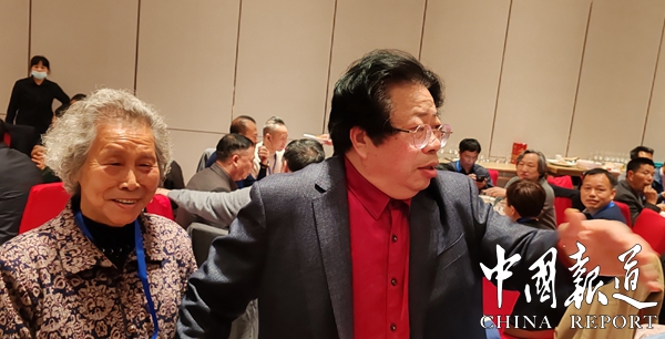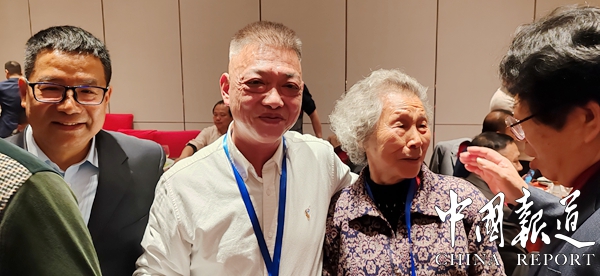 方红英朴实的语迎来大家热烈掌声,在现场,吴姓参会代主动要求与方红英老人同框留影。