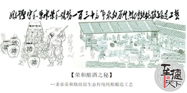 高温馏酒:蒸馏工艺本身是固液分离的技术,但荣和酒生产工艺的蒸馏与其他白酒完全不同。荣和酒的蒸馏馏酒温度高达40℃以上,比其他白酒高 10-20℃,主要目的;一是分离荣和酒经发酵的有效成份;二是去除发酵过程中的副产物或不利物质或低沸点物质 , 这是荣和酒饮用不口干、不上头的一个重要技术。
