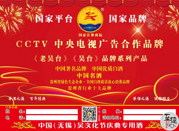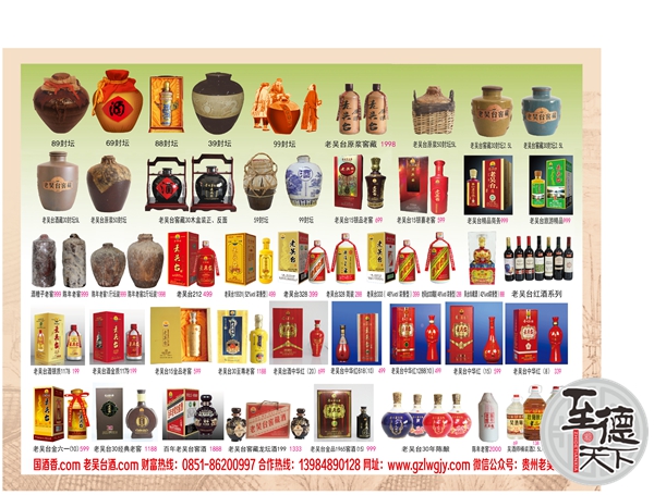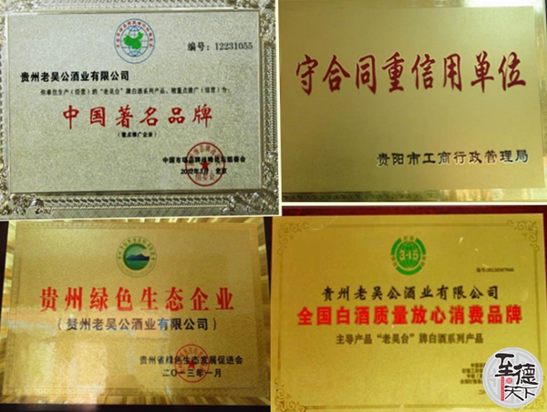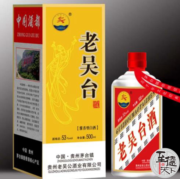 后来,茅台村的人们为了怀念这位“仙女”,特意在瓶颈上系两条红绸带子,以象征仙女披在肩上的那两条红飘带。这就是茅台地区出产的美酒产品包装的最早雏形,也是最经典的包装标识。沧海桑田,转眼过去了很多年,当年的吴公老两口的后人已经遍布赤水河流域,他的子孙后代在全国和世界各地从事着各种行业,但无论怎样,他们忘不了家乡的美酒,于是,部分吴公后人再度传承祖业,酿酒手艺传承从未中断;随着历史的变迁,社会的发展,科技的进步,伴随着茅台镇千年古法酿酒技艺的日臻完善,如今,吴公后人-清华学子学强,通过不懈努力,将传统酿酒事业与国学文化精髓有机融合,另辟蹊径,赋予了美酒佳酿前所未有的生命力;经中华人民共和国国家工商行政管理总局商标局核准,吴氏美酒产品正式注册命名为----“老吴台”合法商标,吴氏美酒再次焕发出创新的活力,绽放出强劲有力的时代光彩!