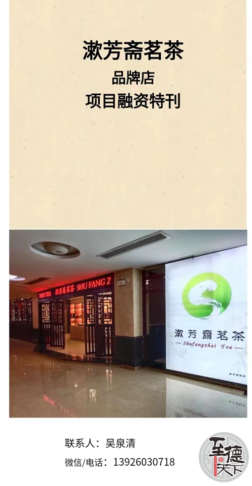 项目名称:漱芳斋茗茶项目 项目地址:全国 项目简介:项目主要做高端茶相关产品。目前有武夷山的岩茶系列,红茶,铁观音系列,乌龙茶等。漱芳斋是一家集品牌茶庄、餐饮、养生为一体的企业,专注于养生产品的研发与推广,努力为人们的健康事业尽一份微薄之力。