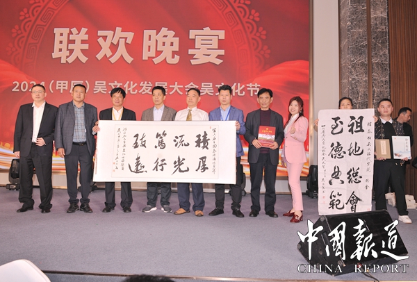 中国报道讯(吴蜀丰通讯员吴乾山吴启林吴建东)4月7日,来自马来西亚、韩国、英国,港澳台及各省市吴宗亲代表在无锡香梅国际大酒店参加由无锡市新吴区泰伯文化研究会、泰伯吴氏宗亲总会主办的中国(无锡)吴文化节联欢晚宴暨颁奖典礼。