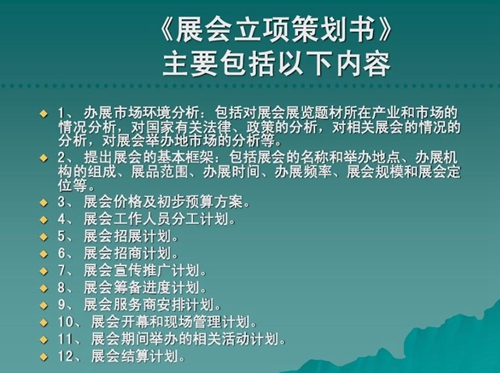 合同形式审查 订立合同应采取书面形式,内容一般应包括:合同双方的基本信息、展会的名称、举办地点、举办日期、展位数量、展位位置、展位费、支付方式、双方的权利义务、违约责任、纠纷解决方式等。