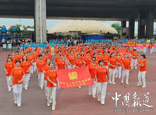 中国报道讯(吴蜀丰报道)2024崇高健康大舞台第六届全民运动会开幕式大型公益健身活动于5月11日上午在重庆渝北区圣名游乐城隆重举行,来自重庆渝中区、南岸区、沙坪坝区、北碚区、合川区、大渡口区等地3000余名中老年运动员及知青方阵、旗袍方阵、文艺歌舞方阵为开幕式助兴。