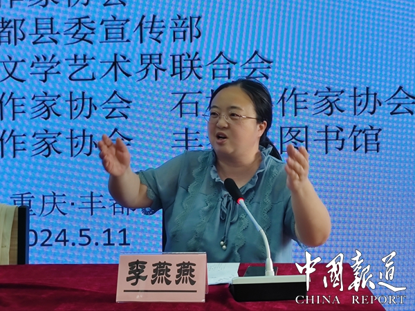 当日上午,《中国作家》编辑部主任佟鑫在丰都图书馆作了题为《报告文学的修为与担当》的文学讲座,重庆市作协副主席李燕燕担任主持。