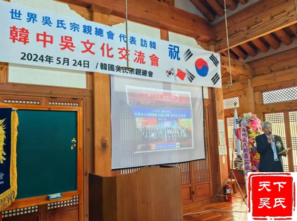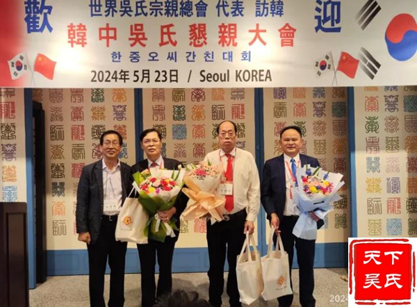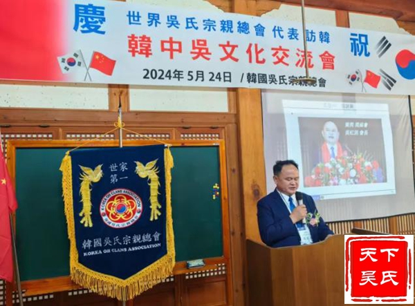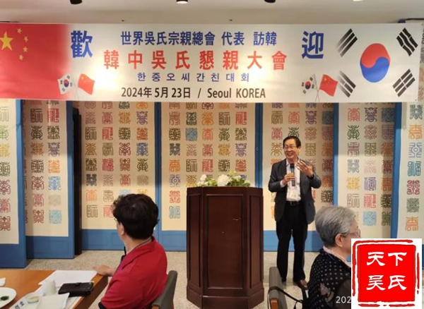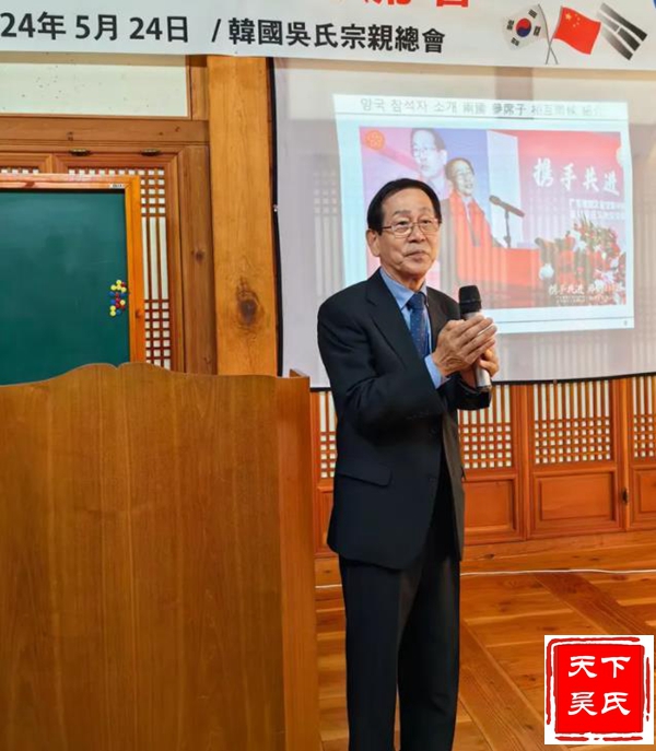 他提到韩国吴氏宗亲到福建泉州合族大宗祠参加甲辰年春祭大典。吴永泽会长提到何为合族,我给他解释说,同是一个吴,因为种种原因断代,所以合族。近年来,我们之所以到各个国家恳亲交流,就是要把大家联谊团结起来,虽然语言不通,但是我们身上共同留的血液相通。包括服装,饮食,宗斋文化与中国的宗祠文化意义都是相同的,所以需要多交流,多互动,把我们传统的吴氏文化世代相传。同时,要加强经济、教育的合作交流和研究,促进世界吴氏的共同发展。