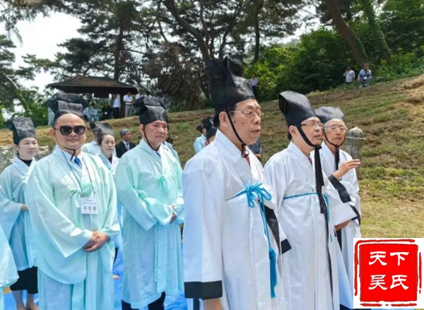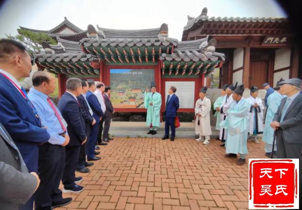 下午14点,恳亲团一行按照议程安排参加了对海州吴氏始祖贞武公吴定邦的墓祭仪式。这一活动不仅是对韩国吴氏祭祀礼仪的一种体验,更是对他们先祖的敬仰,也是对吴氏家族文化传承三让精神的一次集体致敬。在肃穆的仪式中,每一位参与者都深刻感受到了身为吴氏后裔的责任与荣耀,激励着大家在新时代继续发扬光大祖先的传统美德。