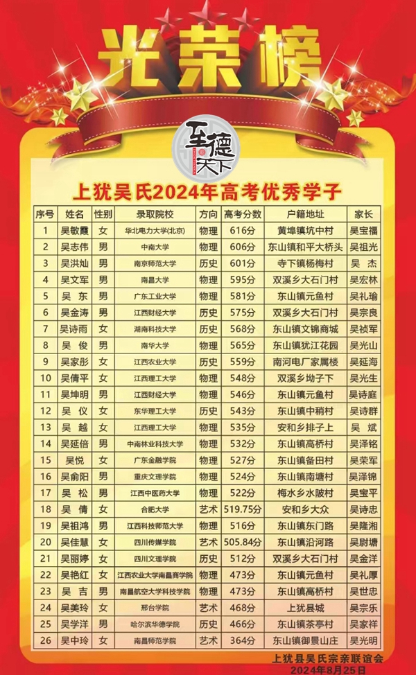 江西上犹吴氏奖励2024年优秀学子
