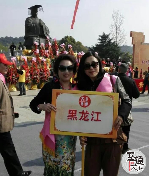 我们走进广场时,已有来自四面八方自发的宗亲约两千多人聚集在泰伯广场。每个代表团都有专人举着自己团队的牌子,我在寻找辽宁、吉林的宗亲团,遗憾的是,当时东北三省只有黑龙江有一人代表黑龙江参加祭祖活动。