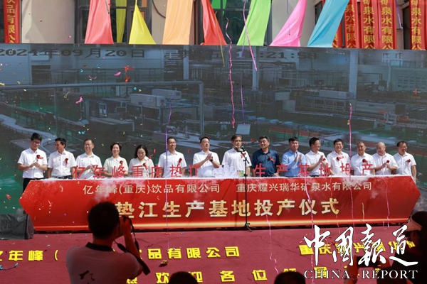 中国报道讯(吴蜀丰报道)9月20日,产值近4亿元的亿年峰矿泉水“重庆耀兴瑞华矿泉水有限公司”在重庆垫江永安镇石口子村红家沟(重庆耀兴瑞华矿泉水有限公司厂区广场)生产基地正式投产,为垫江产业高质量发展注入新动能。