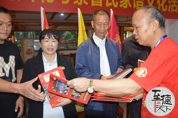 曹正刚在四川蓬安向曹氏族领导成员曹北平等赠送家谱及杂志
