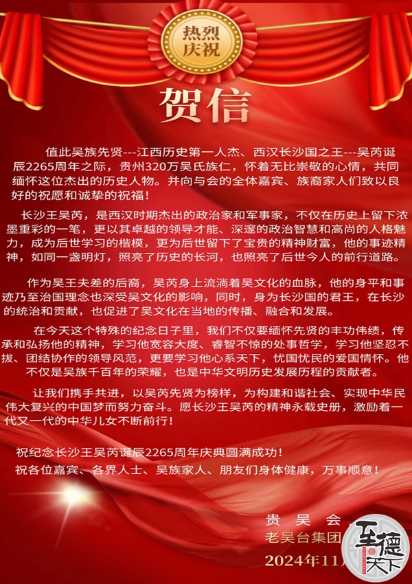 贵吴会老吴台集团祝长沙王吴芮诞辰2265周年庆典圆满成功