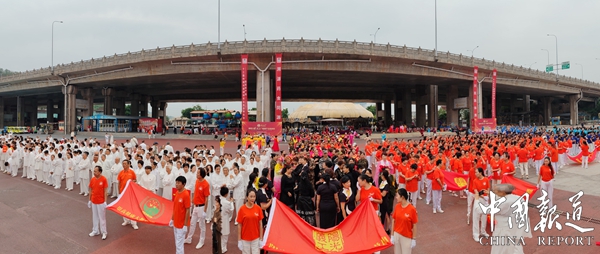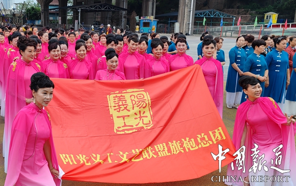 阳光义工爱心联盟组委会会长李永宁,重庆北上广健康科技有限公司董事长汪华先后致辞,总指挥伍培梦在台上宣布第九届达人秀开幕式正式启动,中国爱心健康大使全国总冠军胡艾莲演唱《有你真好》。开幕式上还举行北上广健康产业启动剪彩仪式,旗袍演展、太极拳演展、知青公益总团方阵展示、文艺方阵展示:阳光义工●北上广服务团方阵展示,各方队参加演出2500余人次。