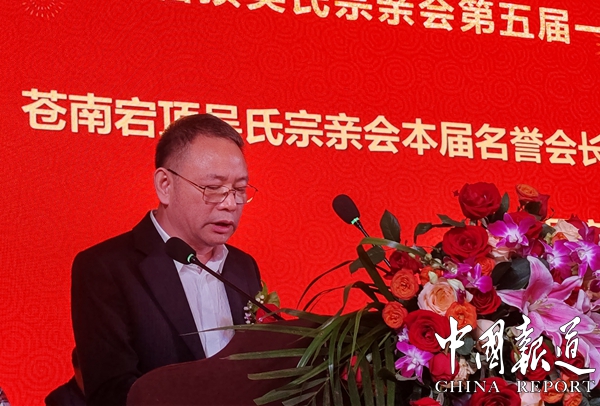 苍南曾子文化促进会常务会长曾云真、中华康姓文化研究会苍南分会会长康铭、苍南郑氏联络站执行站长郑昌黎、浙南萧氏宗亲联谊会常务副会长、浙南萧氏基金会秘书长肖运州、龙港市山前魏氏理事会会长魏中纯、苍南至德宗亲会会长吴宗亲、浙江吴氏宗亲联谊总会执行会长吴燕木先生和中国海南国际投资集团董事长、新加坡旺祥东北区总裁、辽宁省吴氏宗亲总会会长、北美全球吴氏宗亲会会长、中国吳氏三祖地名誉会长、知名华侨活动家吴映辉女士等各姓氏代表和嘉宾先后致辞,祝贺大会取得圆满成功,愿天下吴氏同心同德,誉满全球!